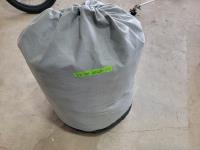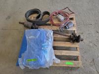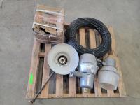 30 x 40 blue tarp (new), (2) air paint sprayers and saw mandrel with belt