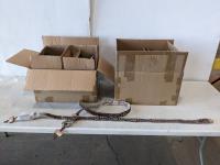 Tree stand, work lights, socket covers, ice scrapper, shovel, manual winch, small wheels