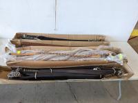 Galvanized ducting, (2) Callaway pack umbrellas, painting supplies, furnace filters, and box of fittings