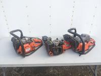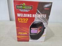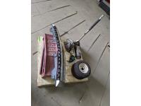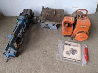 Welding helmets, tire irons, Husqvarna power cutter, (4) wheels, brake shoes
