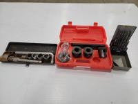 drill bits, socket sets, inverter, work light, vise, grip wrenches, hand saw