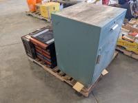 5/8 inch chuck, 1/2 HP motor, wood cabinet, 110 volt, drill bits, miscellaneous accessories