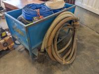 44 (5) 2 Inch Lay Flat Hose, (1) 1-1/2 Fire Hose, (2) 2 Inch Suction Hoses, Metal Bin On Wheels