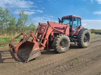 Case Ih L775 loader, Q/A, bucket, grapple, mid mount hydraulic connection, 6.7 L 6 cylinder 167 HP, diesel engine, 135 PTO HP, 18 speed power shift transmission, cab, ROPS, A/C, 540/1000 PTO, 3 point hitch, 3 rear hydraulic outlets, 420/85R28 front tires, 520/85R38 rear tires