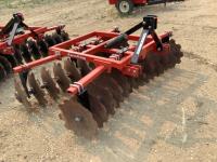 16 ft front discs, 19 inch rear discs, tandem wheels on main frame, spring loaded scrapers