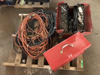 257 (2) Metal Tool Boxes with Contents, (2) Long Extension Cords