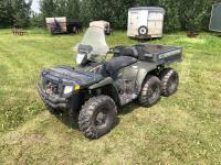John Deere 741 loader, Q/A, grapple, mid mount hydraulic connection, John Deere 6.8 L 6 cylinder engine, 20 speed Auto Quad partial power shift transmission, cab, left hand reverser, rear differential lock, joystick, A/C, radio, buddy seat, 540/1000 PTO, 3 point hitch, 3 rear hydraulic outlets, rear wheel weights, 16.9-28 front tires, 20.8-38 rear tires