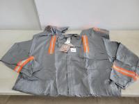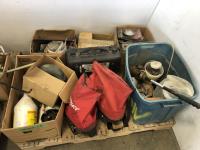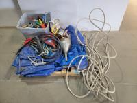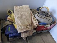 Tarp, chains, jack, hooks, hydraulic power bank, rain coat