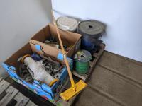 Cardboard, gloves, ear muffs, first aids supplies, packing wrap, wire