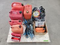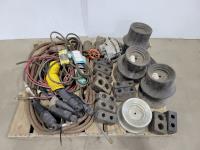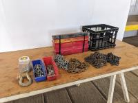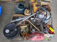 Inner tube, chains, (3) bottle jacks, roll of wire
