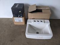 1755 Gerber Peewee Spacesaver Sink, Danze Shower Head and Pressure Valve (Unused)