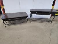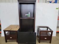 1568 (2) Solid Wood End Tables, Wood Shelf and 34 Inch TV