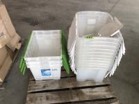 (2) Small pet carriers, (2) water/feed dishes and (2) pails of aquarium rocks