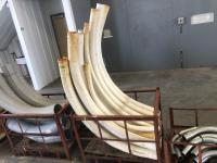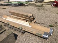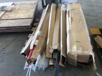 Threaded rod of various thicknesses 2 ft to 10 ft lengths, 2.5 inch x 2.5 inch x16 ft steel tube, 8 inch x 13 ft steel U-channel, qty of tin strips 3 inch x 10.5 ft 1/4 inch steel plate 2.5 inch x 20 ft l, decorative slate: (1) 10 inch x 26 inch, (1) 12.5 inch x 16.5 inch, miscellaneous cuts of steel, right angle decorative brown and white trim: 10 ft l x 1 inch d x 1 inch h, white trim: 45 ± strips, brown: 45 ± strips, (10) right angle white trim: 10 ft x 2-3/4 inch x 1/2 inch, (3) black right angle trim: 10 ft x 2-3/4 inch x 1/2 inch, (4) 10 ft x 8 inch tin, roll plastic 52 inch w