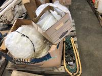 Qty of nails, screw nails, fencing staples, (3) 62.3L bags of Sphag Sorb environmental organic absorbent, (2) rubber truck mats, (3) water measurement sticks