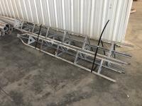 (2) 1/2 inch x 8 inch x 12 ft aluminum plate, (1) 2.5 inch 11 ft roll aluminum, assorted angle iron, flat plate, 3/4 inch square tubing, 2 inch x 4 inch x 20 ft tubing, (3) 6 ft door hinge brackets, 3/8 inch x 12 ft cold roll aluminum