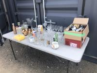 57 Qty Kitchen Utensils, Mugs, Shot Glasses, Vases & Candles