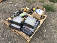 1222 Qty of Hand Tools, Sandpaper, Lights, Bench Grinder & Drill Bits