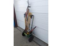 Rakes, forks, shovel, pruners, miscellaneous tools