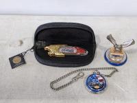 (2) grease guns, Chicago pneumatic 3/8 inch impact, (11) radio antennas, (8) CAT locks, miscellaneous parts
