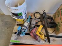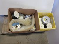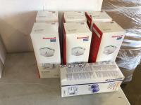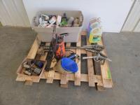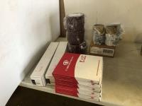 (4) 4 inch - 4-3/4 inch fire extinguisher brackets, (9) paint mixers, (12) boxes assorted sand paper, Milwaukee masks, (4) boxes assorted sand paper sheets