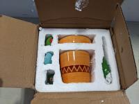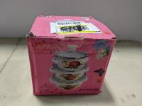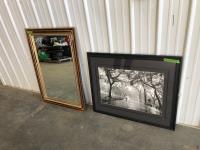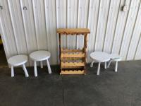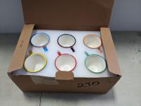 (3) wooden chairs, wall clock, qty of dishes: (6) plates, (6) bowls, (7) teacups, (6) saucers