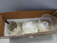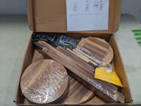 6 inch discs, 5 inch 280 grit sanding discs, 5 inch 150 grit sanding discs, 6 inch 220 grit sanding discs, 12 inch 120 grit discs, 2 inch x 32 inch conditioning belts, 4 inch x 11-1/4 inch conditioning belt, 4 inch x 132 inch conditioning belt, buffing discs, assorted discs and belts