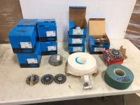 Vacuum bags, safety glasses, assorted sanding belts, fibre discs, 3 inch cutting discs