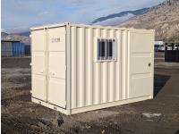(4) side doors, rear swing door, 9 ft 6 inch h, lock box, side forklift pockets, one time use