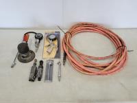 (5) ratchet boomers, (2) snap boomers, (3) 1-1/2 inch shackles, (3) 3/4 inch shackles, (2) hammers, stop sign