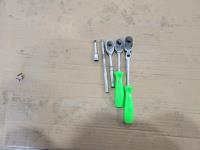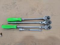 1568 (3) Snap-On 1/4 Inch Drive Ratchets and (2) Extensions