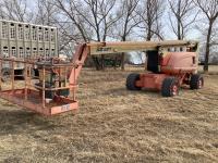Duetz TD 2.9L 4 cylinder diesel engine, positive air shut off, 60 ft max lift height, 500 lb max weight capacity, jib, power to platform, 355/55D625 foam-filled tires