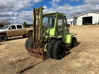 Propane powered Nissan motor, two stage tilting mast, 42 inch pallet forks, 7.00 - 12 front tires, 6.00 - 9 rear tires, front tire chains, 132 inch ± mast fully extended.