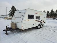 Sleeps 4, stove, fridge, microwave, full bath, master bedroom, A/C, manual awning, power levelling jacks, spring suspension, electric brakes, 225/75R15 tires