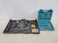 Makita duffel bag, speaker, charger, (3) batteries, impact drill, drill