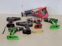 Jig saw, circular saw, impact drill, drill, (2) batteries, battery charger