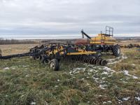 10 inch spacing, single shoot openers, 3 inch steel packers, Air Cart: 2 compartments, 8 inch loading auger, single fan, monitor, 16.5-16.1 front tires, 16.5-16.1 rear tires