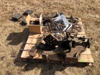 6 inch vise, qty of shelf brackets, (3) snowmobile dollies, tow hook, Qty of 1.5 inch roofing screws, set of cable tire chains, (2) ball hitches