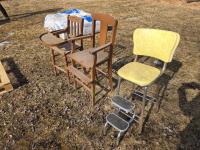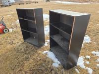 (2) metal boxes, display shelf 52 inch L X 10 inch D X 31 inch H, (2) tables (1) 25 inch X 19 inch X 20 inch high, (1) 26 inch X 22 inch X 20 inch high