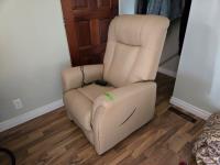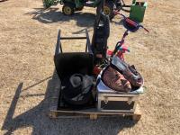 Ottoman 29 inch wide X 18 inch deep X 16 inch high, 2 burner electric hot plate, B&D jigsaw, qty of hats, Ceramic tower heater, (3) folding chairs, padded bleacher seat, HP office jet Pro 8600 printer