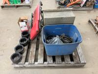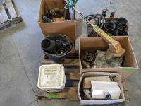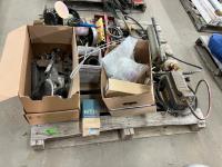 Tail lights, air pump, (2) aluminum fenders, miscellaneous hose, 5TH wheel head, 2003 Ford F350 transfer case, (2) aluminum beer kegs, fuel hose, filter and nozzles, metal box, Kid's Quad (inoperable)