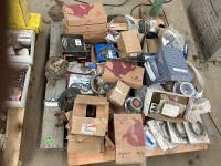Toolbox containing qty of electrical supplies, satellite installation kit, handsaw, 1-1/2 inch double sink waste outlet