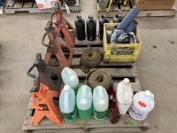 Reese 2 inch drop hitch, (2) Coleman 1 lb propane bottles, halogen light bulbs, painting supplies, chalk line, cut-off discs