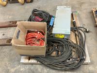5381 Powerfist 2 Ton Trolley Jack, 12 Ft Booster Cable Set and Battery in Battery Box