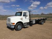 International 7.3 L V8 diesel engine, electric engine block heater, 5 speed manual transmission, radio, hydraulic wet kit, steel headache rack, steel tool boxes, 16 ft x 92 inch deck, hoist, spring suspension, 4.33 ratio, 199 inch WB, 6000 lb front axle, 15500 lb rear axle, 8R19.5 tires