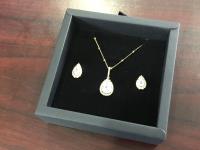 1302 Smartlife 14K Gold Plated 2 Piece Pear Halo Set (Unused)