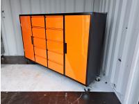 4 side doors, 1 end door, lock boxes, white color