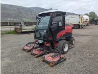 Kubota 4 cylinder 2.4 L 56HP diesel engine, cab, heater, AC, radio, cb radio, 29X14.00-15 front, 20X10.00-10 rear tires, (5) 27 inch 30834 cutting units