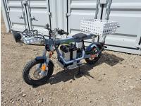 Dana CLASS H electric motor, 03XL battery 3.5 kWh, LED screen, disk brakes, chain drive, full suspension, headlights, tail light, turn signals, kickstand, front and rear basket, Kenda 100/90-14 off road tires,