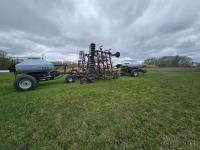 12 inch spacing, spring tooth harrows, dual arm 6 ft sections, Max Flow anhydrous ammonia applicator, rear tyow hitch